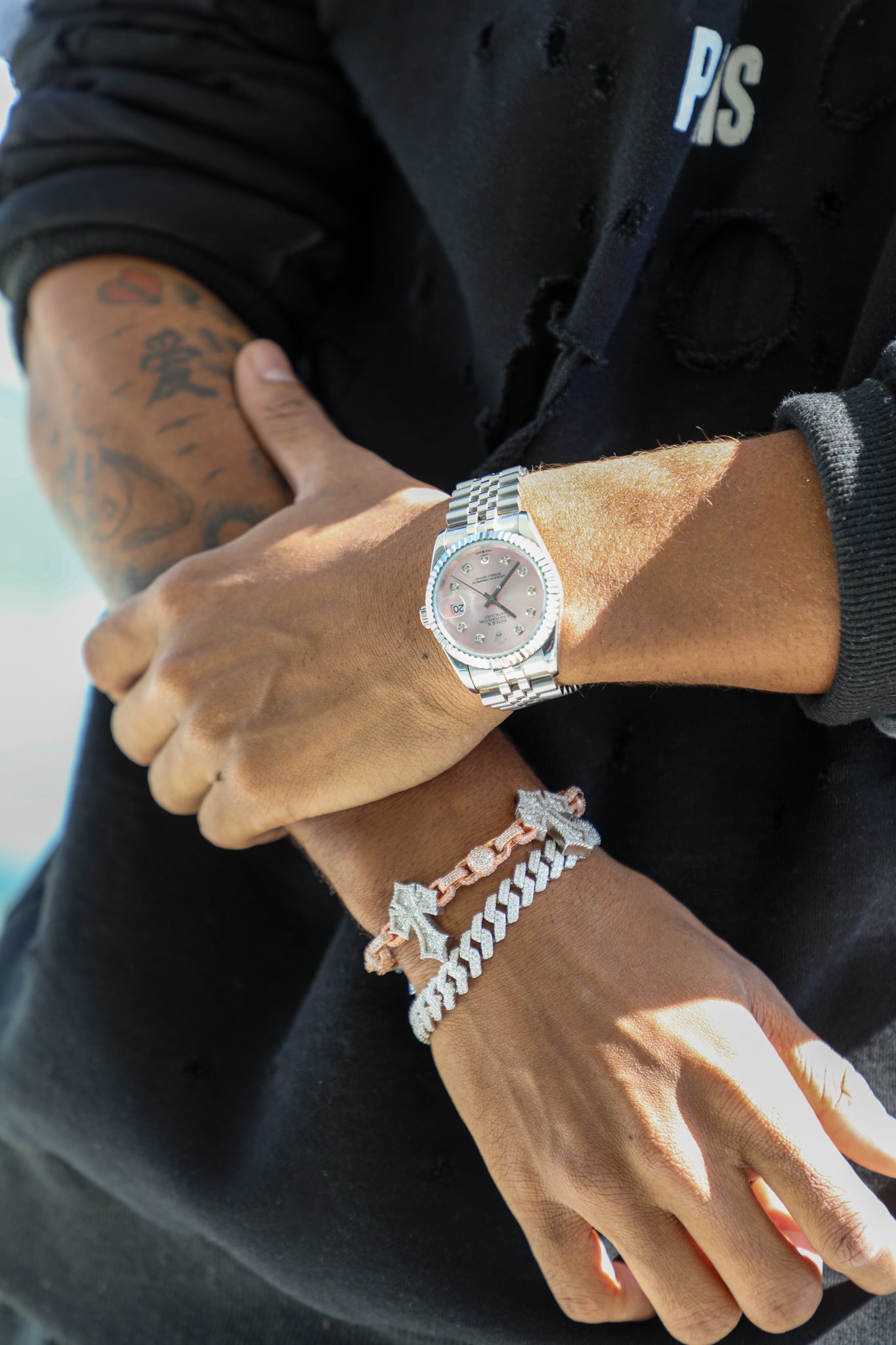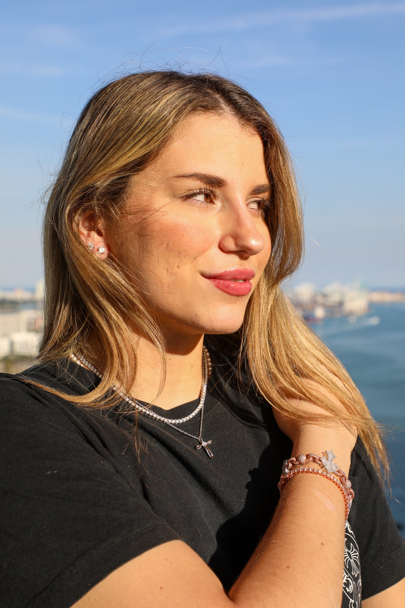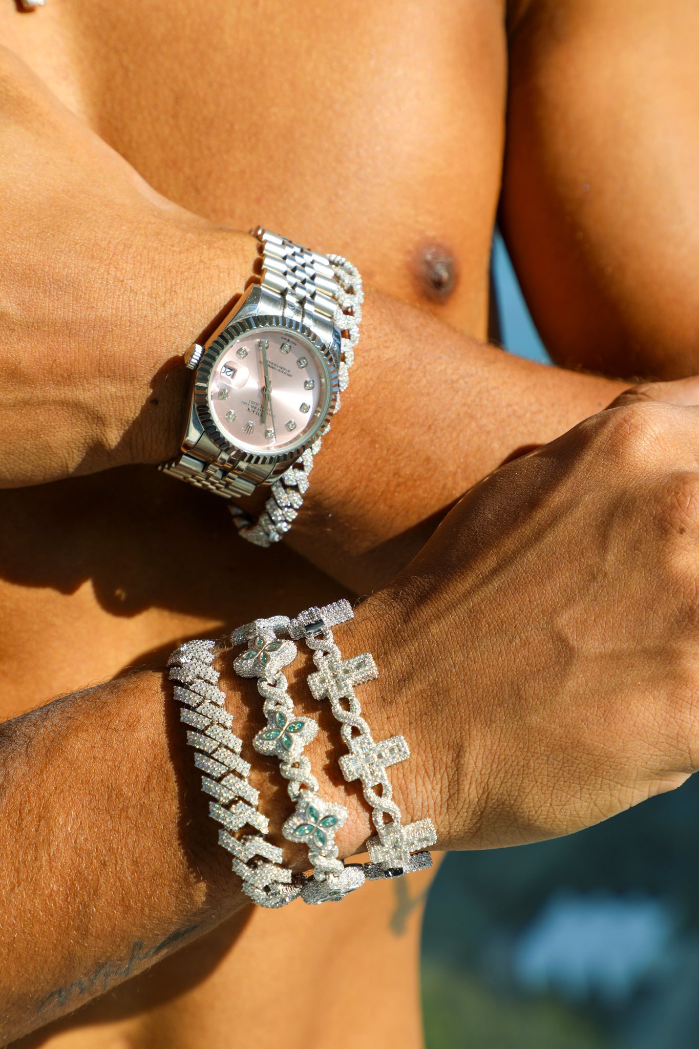 Cross Ball Link Bracelet- Moissanite
